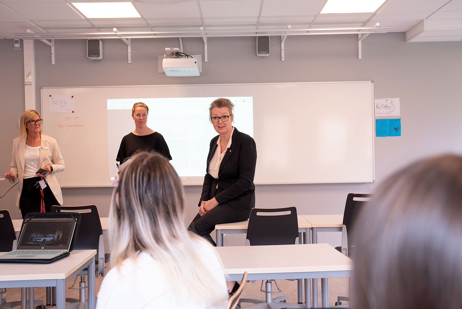 Med under hela besöket fanns Magnus Åbergsgymnasiets rektor Carolina Blomster, Kunskapsförbundets utvecklingschef Maria Hildefors, Maud Bengtsson, ordförande i Kunskapsförbundets politiska direktion samt kommunalrådet Monica Hansson.