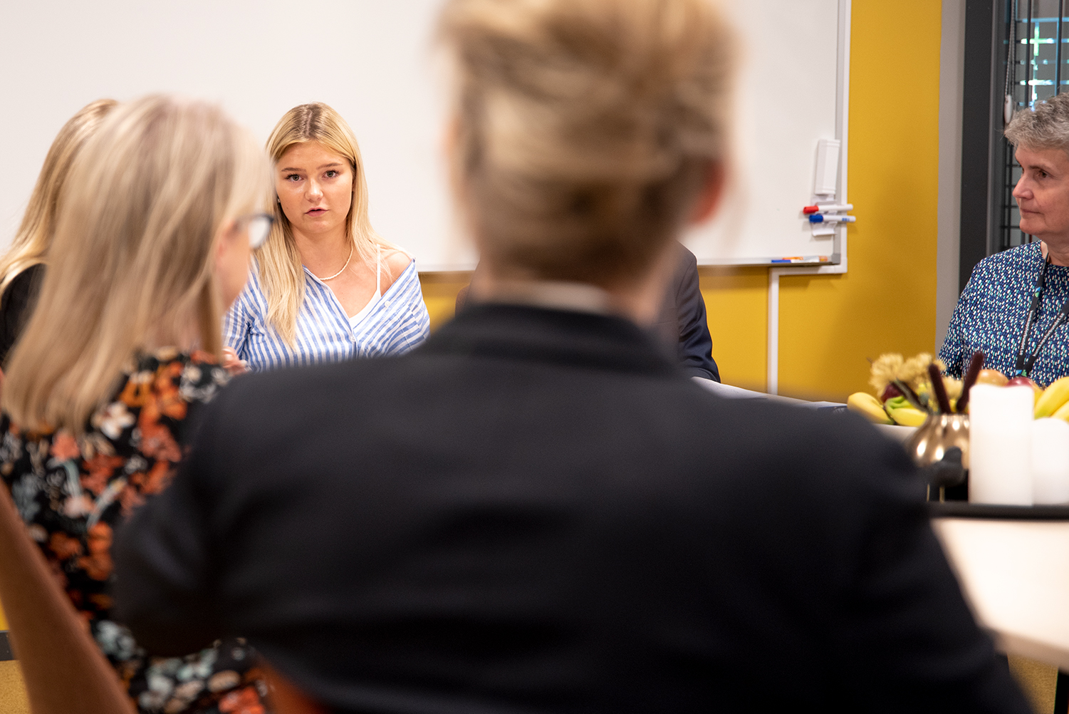 Efter en kort rundtur på skolan och lektionsbesök på Hotell- och turismprogrammet samt Samhällsvetenskapsprogrammet, satt ministern ner en längre stund med en grupp elever och lärare. Eleverna som representerade olika program hade förberett frågor till Lina och samtalade kring allt från skolmat till nationella prov och utmaningar med olikvärdighet i Sveriges skolor.