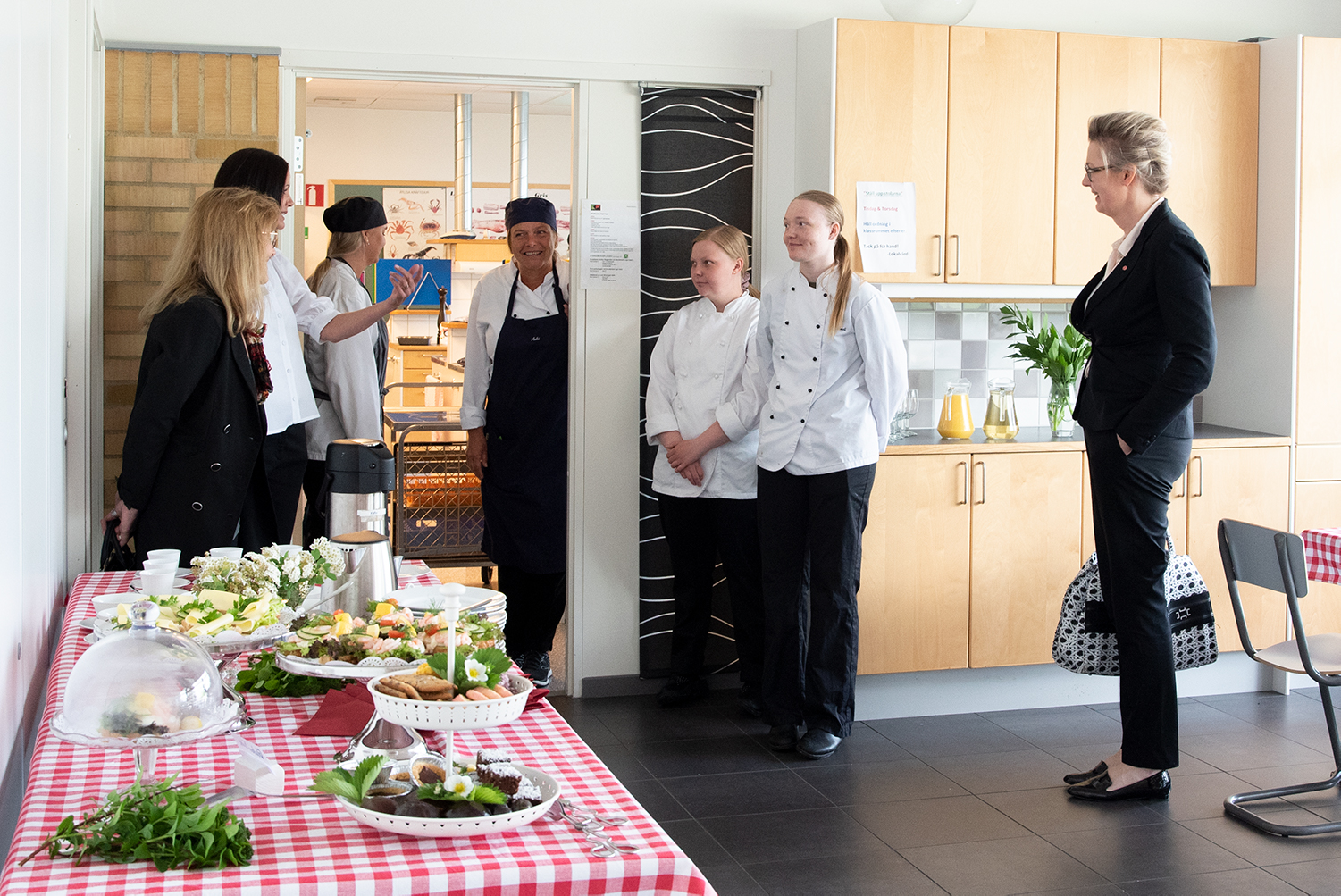 Skolministern inledde sitt besök med att bli bjuden på fika i gymnasiesärskolans lokaler, och fick där prata med elever som själva bakat och dukat upp inför mötet.