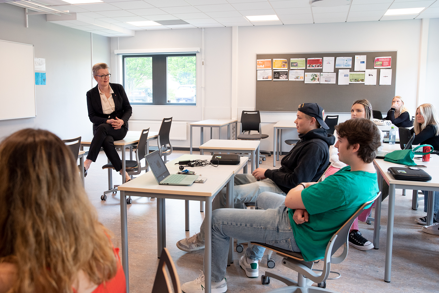 Efter en kort rundtur på skolan och lektionsbesök på Hotell- och turismprogrammet samt Samhällsvetenskapsprogrammet, satt ministern ner en längre stund med en grupp elever och lärare. Eleverna som representerade olika program hade förberett frågor till Lina och samtalade kring allt från skolmat till nationella prov och utmaningar med olikvärdighet i Sveriges skolor.