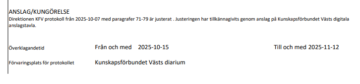 Sammanträdestider för Kunskapsförbundet Väst direktionen 2025: