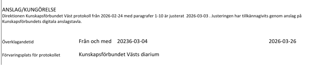 Sammanträdestider för Kunskapsförbundet Väst direktionen 2026: